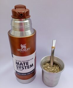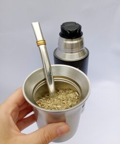 La tapa de acero inoxidable se puede reutilizar como mate o vaso para que puedas disfrutar de la bebida en cualquier lugar.